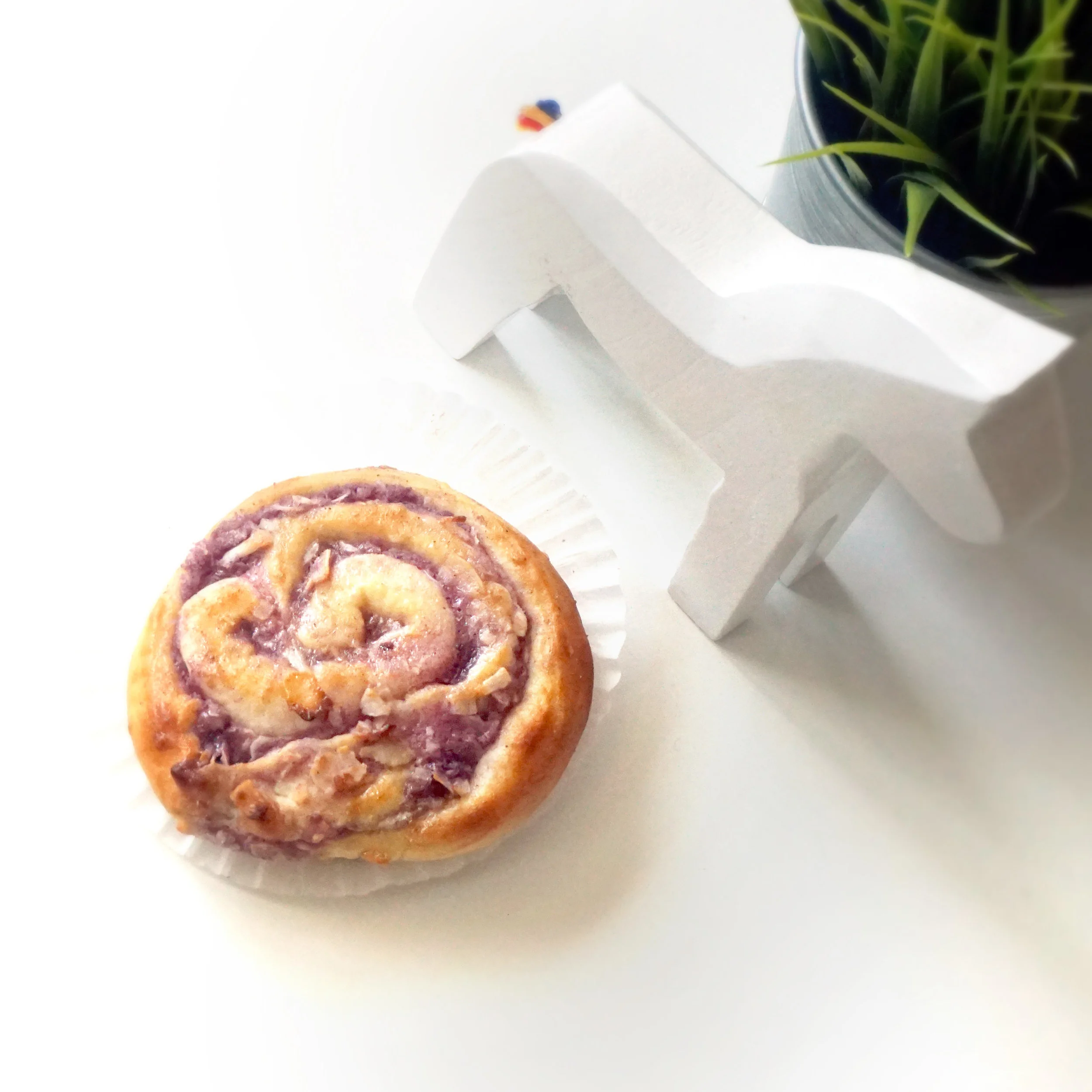 KANDEL: Cinnamon! Like a lightly sweet cinnamon roll with little crunchy sweet bits on top! And it's not super sticky and messy like a cinnamon roll! Cinnamon paste in the folds!